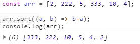 위의 코드에서 a.age > b.age 이면 -1을 반환하여 이때 a, b 요소는 위치가 바뀌지 않지만, a.age < b.age 이면 1을 반환하여 이때 a, b 요소는 위치가 서로 바뀐다.