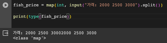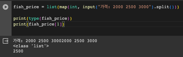 fish_price = list(map(int, input("가격: 2000 2500 3000").split()))