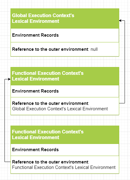 → 이 참조 연결 고리는 목적인 변수를 찾아내거나 Global Lexical Environment 에 다다를 때까지 이어진다.