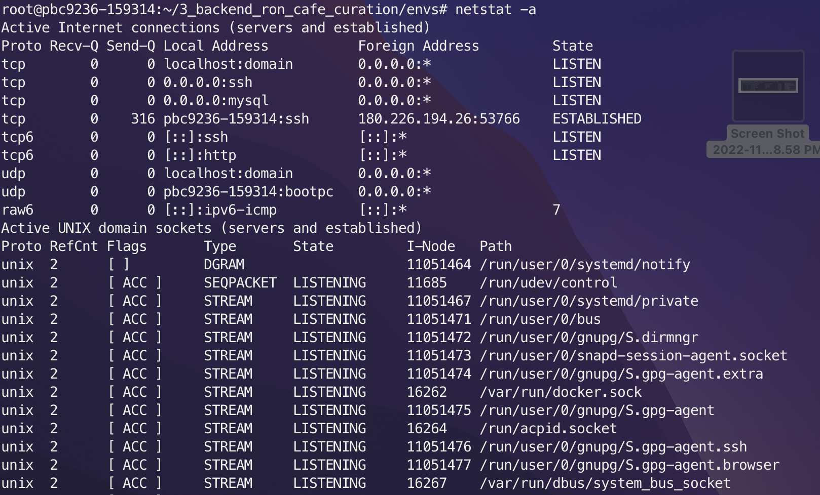 netstat 은 네트워크 연결 상태, 라우팅 테이블, 인터페이스 상태 등을 보여주는 명령어입니다.