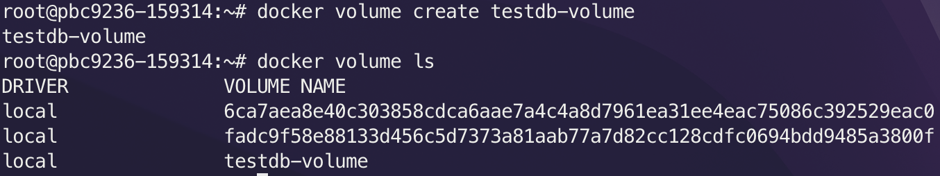 다음 명령을 실행하면 현재 docker host에 있는 volume 목록을 확인할 수 있습니다.