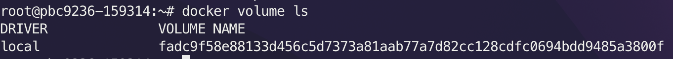출력된 volume 목록을 보면 해시값으로 volume 이름이 생성되어 있고, fadc9f58... 으로 시작하는 volume이 local 드라이버를 사용해 만들어져 있음을 알 수 있습니다.