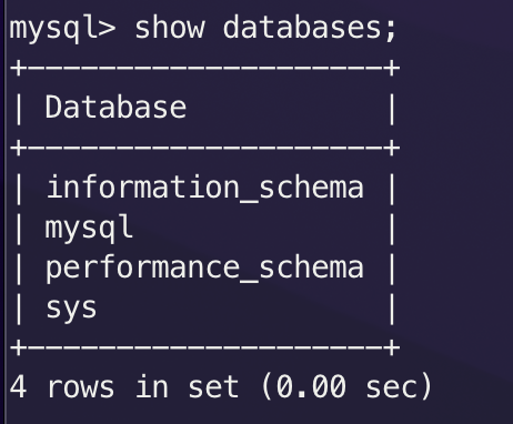 # database 목록 확인 후 mysql 클라이언트 빠져 나오기